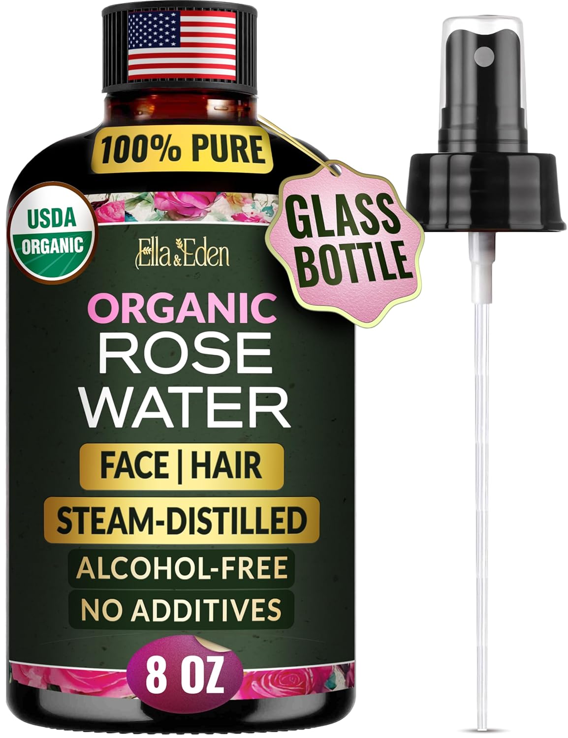 Unlike synthetic rose sprays made with fragrance oils, Ella & Eden Rose Water is steam-distilled from real organic roses, ensuring a naturally light, authentic floral aroma — never overpowering or artificial.